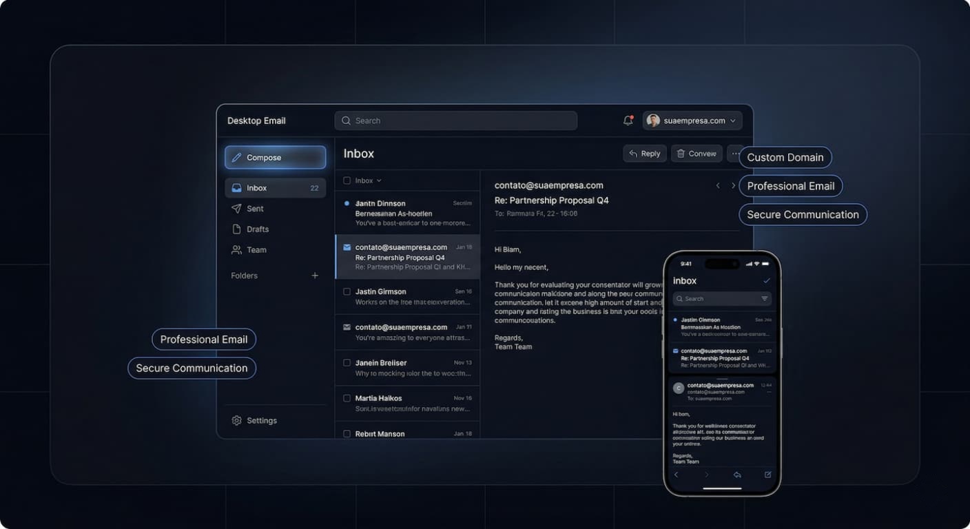 Quando sua empresa usa um domínio próprio e um e-mail profissional, ela transmite mais confiança logo no primeiro contato. Em vez de parecer improvisada, passa a se apresentar de forma mais séria, organizada e preparada para atender melhor.
