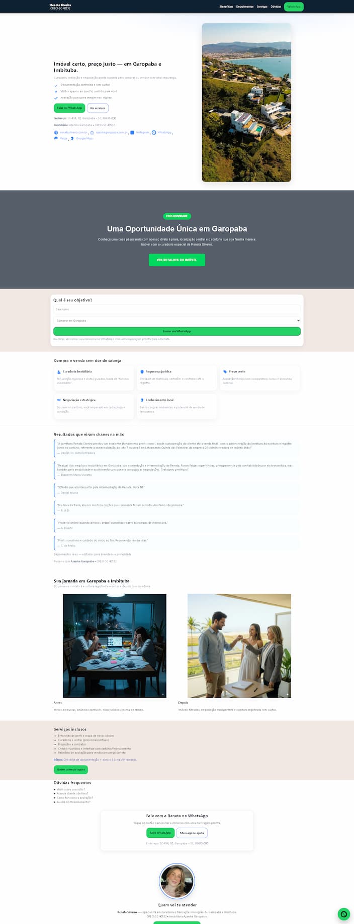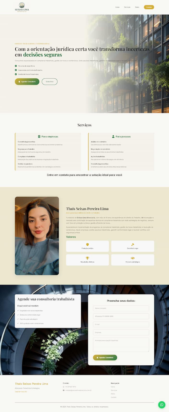 Uma página própria para apresentar seus serviços, transmitir mais confiança e organizar melhor sua presença digital.